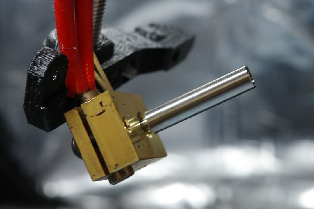 補足しますと本来ヒートブレイクのヒートシンクに入っている部分はホットエンド以外の場所でフィラメントが熱で溶け出してしまわないように、加熱しているホットエンドの熱からPTFEチューブ内のフィラメントを守るため冷やす部分でファンによって冷やされたフィートシンクからの熱を効率よく受け取るためサーマルペースト塗布しています。PCのCPUグリスを同じようなものですね、密着性がないと効率悪いもんね。