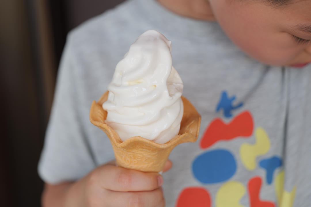 何を食べようか考えていると子供達がソフトクリームを食べたいというので昼食前にデザートを食べることに。