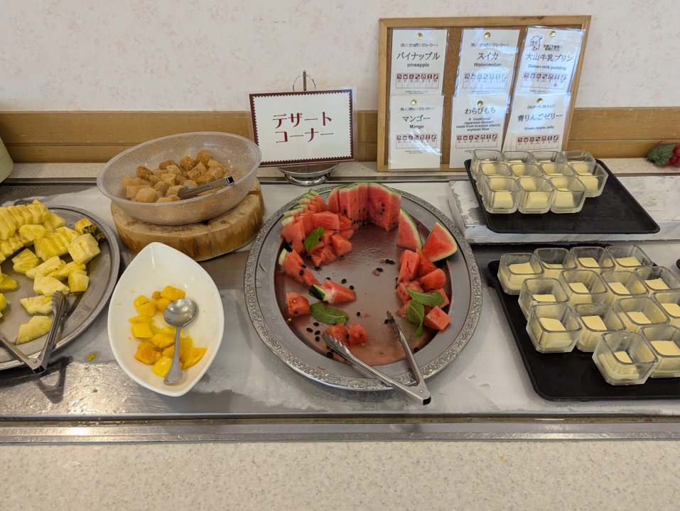 焼き魚にその場で握ってくれるお寿司や子供が大好きな揚げ物類にお蕎麦屋やうどん、お肉料理も豊富でジンギスカンもありました。そしてデザートも沢山用意されていて何を食べようか本当に迷ってしまいます。ビュッフェってついつい取りすぎてしまうんですよね、自分の胃袋と相談しつつ少しずつお皿に取りましょう。