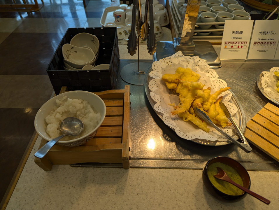食事はビュッフェとなっており、海と山の幸が所狭しと並びます。