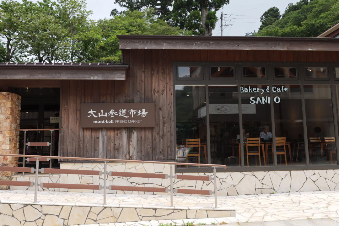 途中にお土産屋さん、飲食店や足湯に郵便局、モンベル等もあるこの道は御幸参道本通りという道で、大山寺への参道となっています。